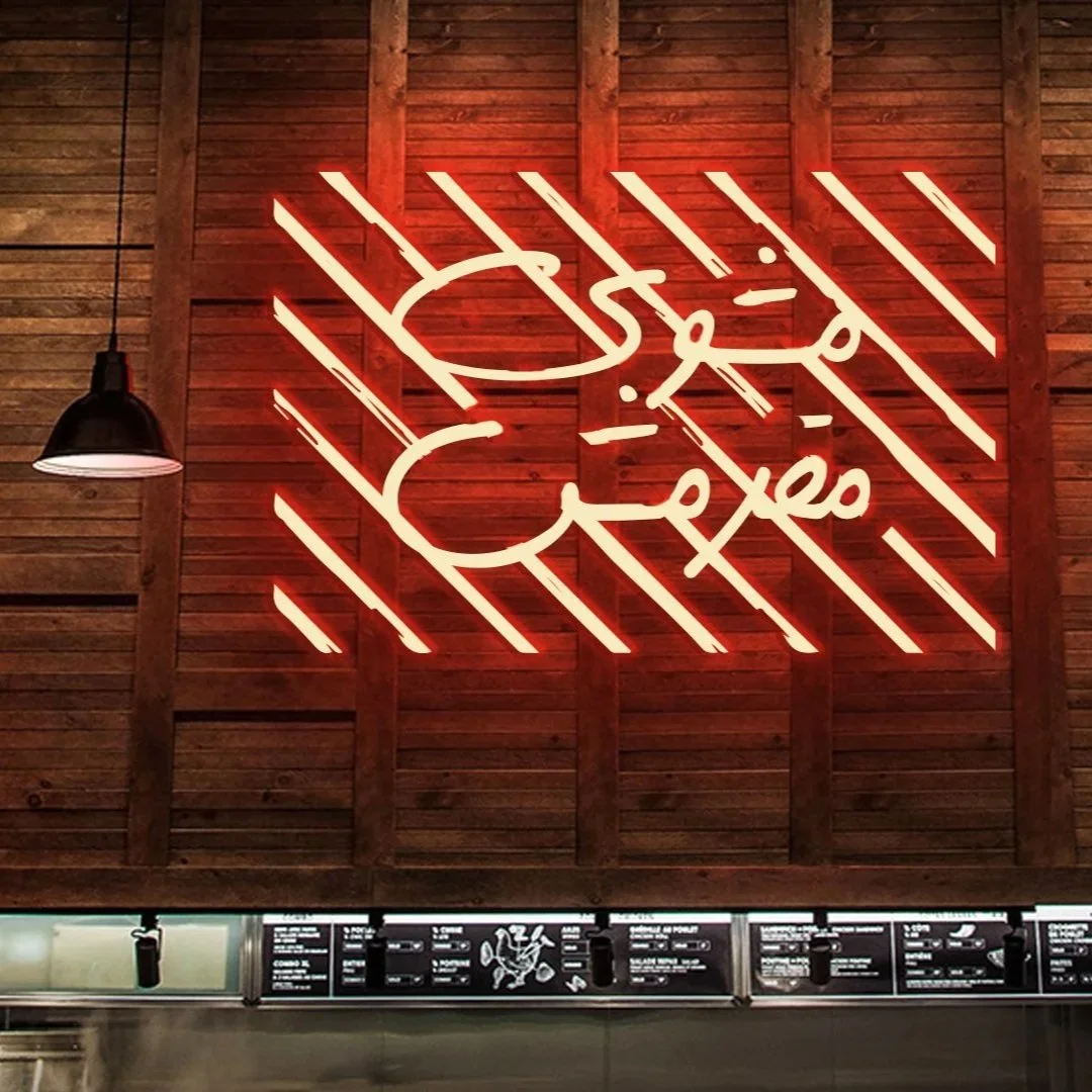 A beloved Saudi restaurant chain serving authentic, made-from-scratch Arabian cuisine across five locations. I led the brand refresh to modernize its identity, making it younger and more vibrant while honoring its heritage. The redesigned Arabic wordmark resembles five flames, and a bold color palette — green for spice, red for heat, yellow for warmth — reflects the energy and warmth of the brand.