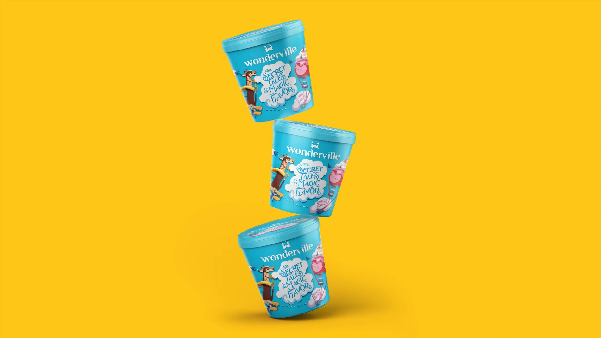Wonderville is an ice cream brand designed to take you beyond the everyday — reimagining the ordinary into something spectacular, bold, and fantastical. The brand unfolds across two ranges: the main line and a kids edition. The main range invites you into the world of Wonderville, where each SKU tells a unique story shaped by the flavor experience. The kids edition launches into a separate, more whimsical world — a sky-high adventure filled with playful visuals and magical storytelling tailored to young imaginations. Though visually distinct, both ranges share the same spirit: transforming ice cream into an escape, a journey, and a joyful moment of wonder.